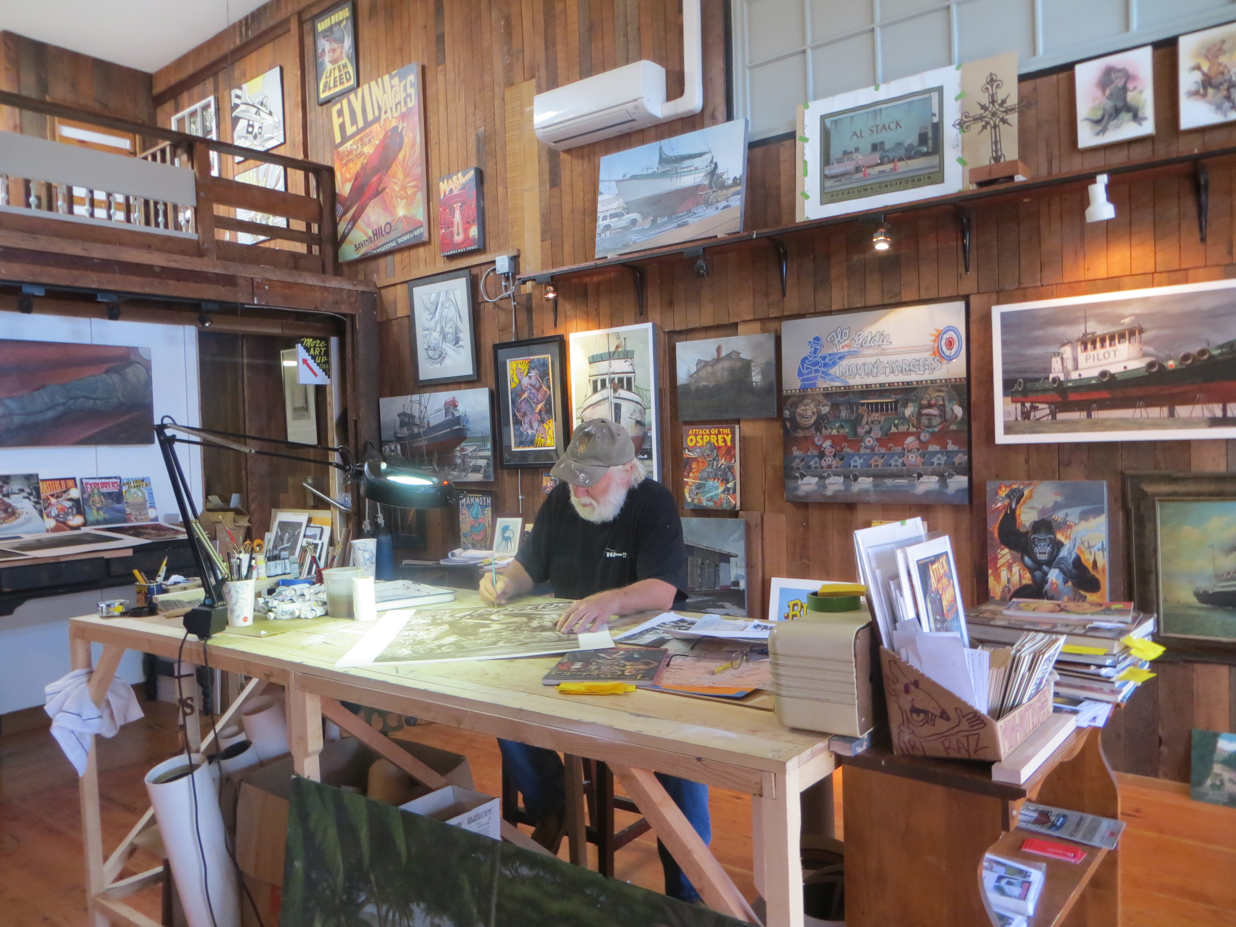 Ratz and Co/Dave McMacken's gallery/studio combo of commercial illustrator Dave McMacken hopes to bring his own brand of weirdness to the local art and tourist scene.Although most the work is his, McMacken also showcases other artists in Ratz and Co. including Portland artist Jacki Avery; Frank Zappa's former personal designer and illustrator Calvin Schenkel; Vancouver,Wash.. artist Stephen Bergstrom; Astoria photographer David Myers; Seattle stone suiseki artist Ed Keun; and McMacken's daughter, artist and interior designer Emma Davis. McMacken's own commercial work on display includes anything from the cover of Frank Zappa's 1971 American-British musical surrealist film "200 Hotel Rooms" to tourist advertisements depicting the Golden Gate Bridge in San Francisco, the Honda Classic golf tournament in Florida and other various events and attractions around the country |