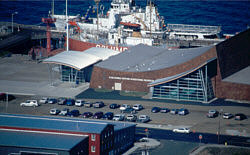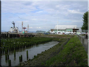 Outside museum looking NW toward Astoria Bridge, adjacent right side/north is Columbia River Lightship