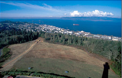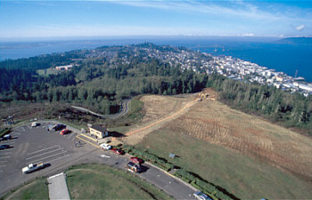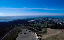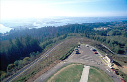 The Astoria Column, in a wooded park atop Astoria's highest hill, presents a spectacular view of the historic city and its surrounding rivers, bay, forest, mountains, and ocean. The Column, built in 1926, is 125 feet high and has 164 steps winding to the top.